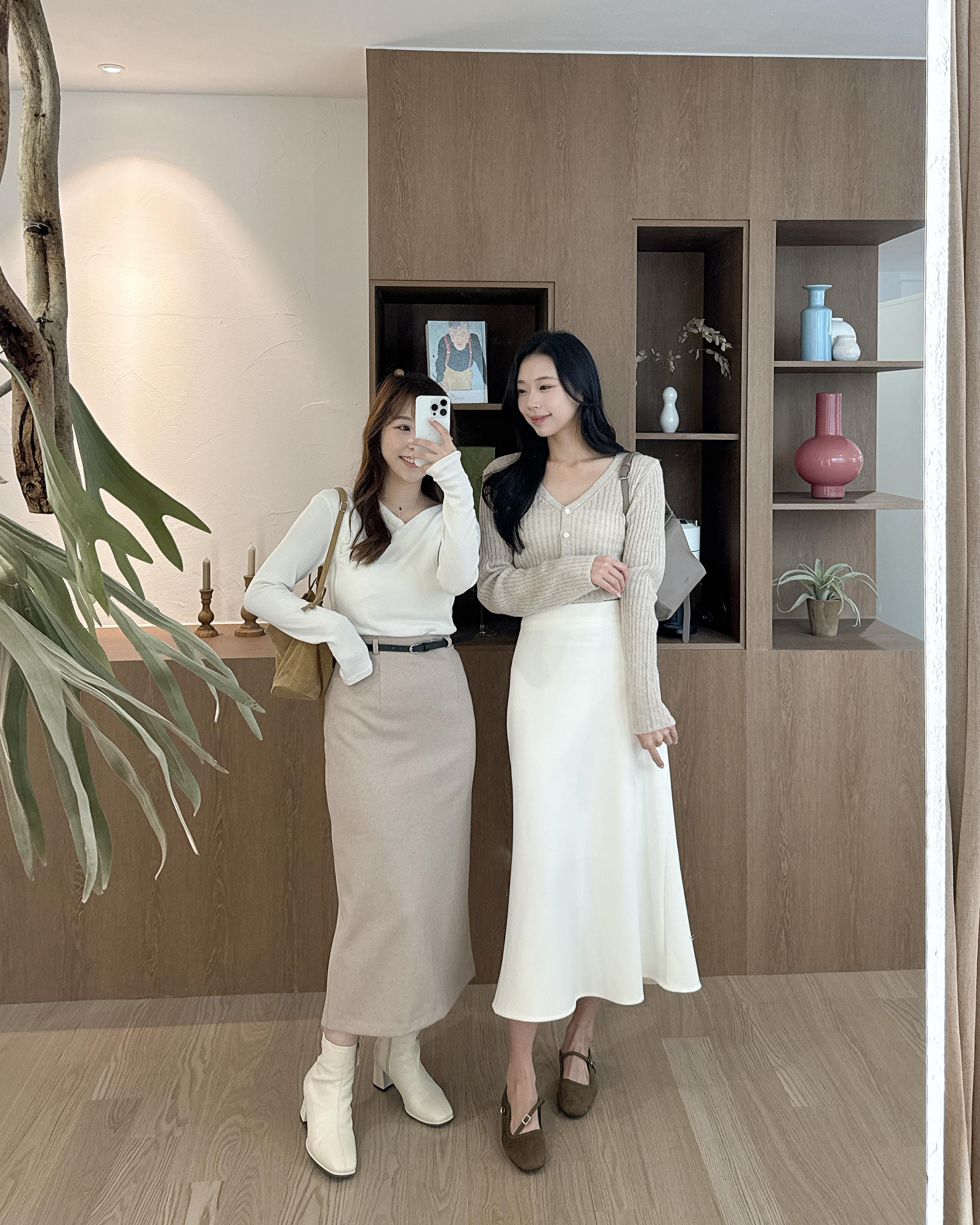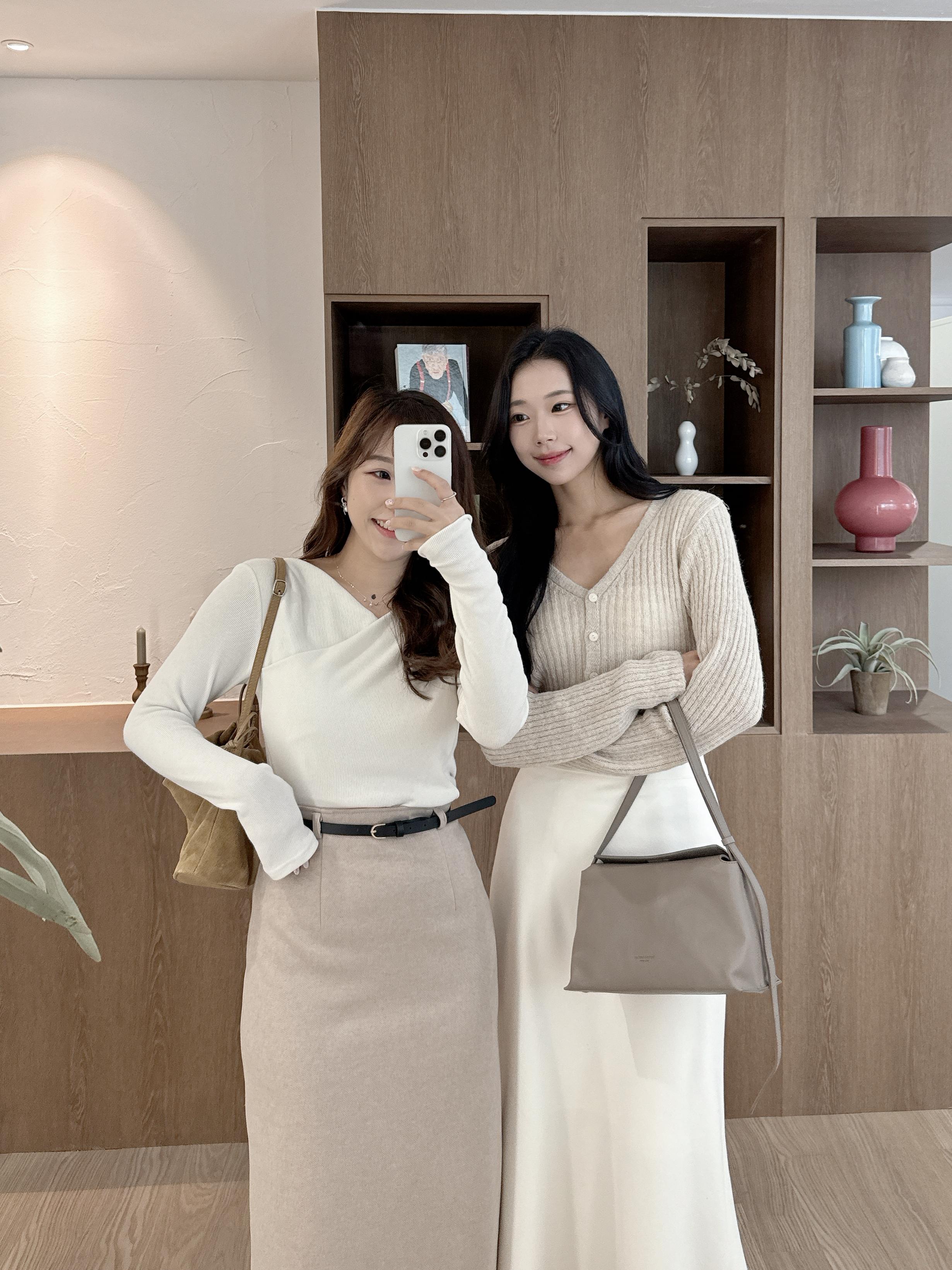 SIZE 尺寸: LENGTH 衫長° 50cm CHEST 胸圍° 40 inch SHOULDER 肩闊° 43cm SLEEVE 袖長° 71cm °成份8%羊毛 交叉重疊大彈性上衣!不透光的!! 很好穿 配搭任何下身單品都好看 配搭格仔裙或者連腰帶A字後開叉裙都好看 皮帶可以作分隔更加提升穿搭效果! 着起很舒適,沒有束縛感 裙子很有質感 可以提升女性美🤍 格仔裙亦都可以更加分明中和簡約感!