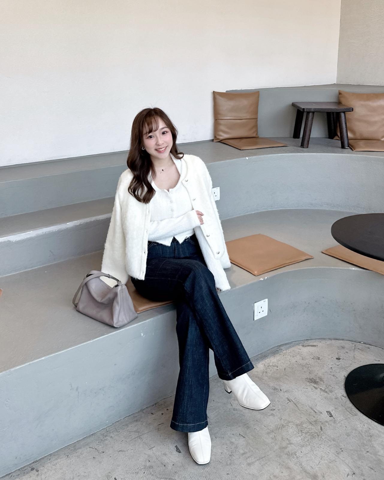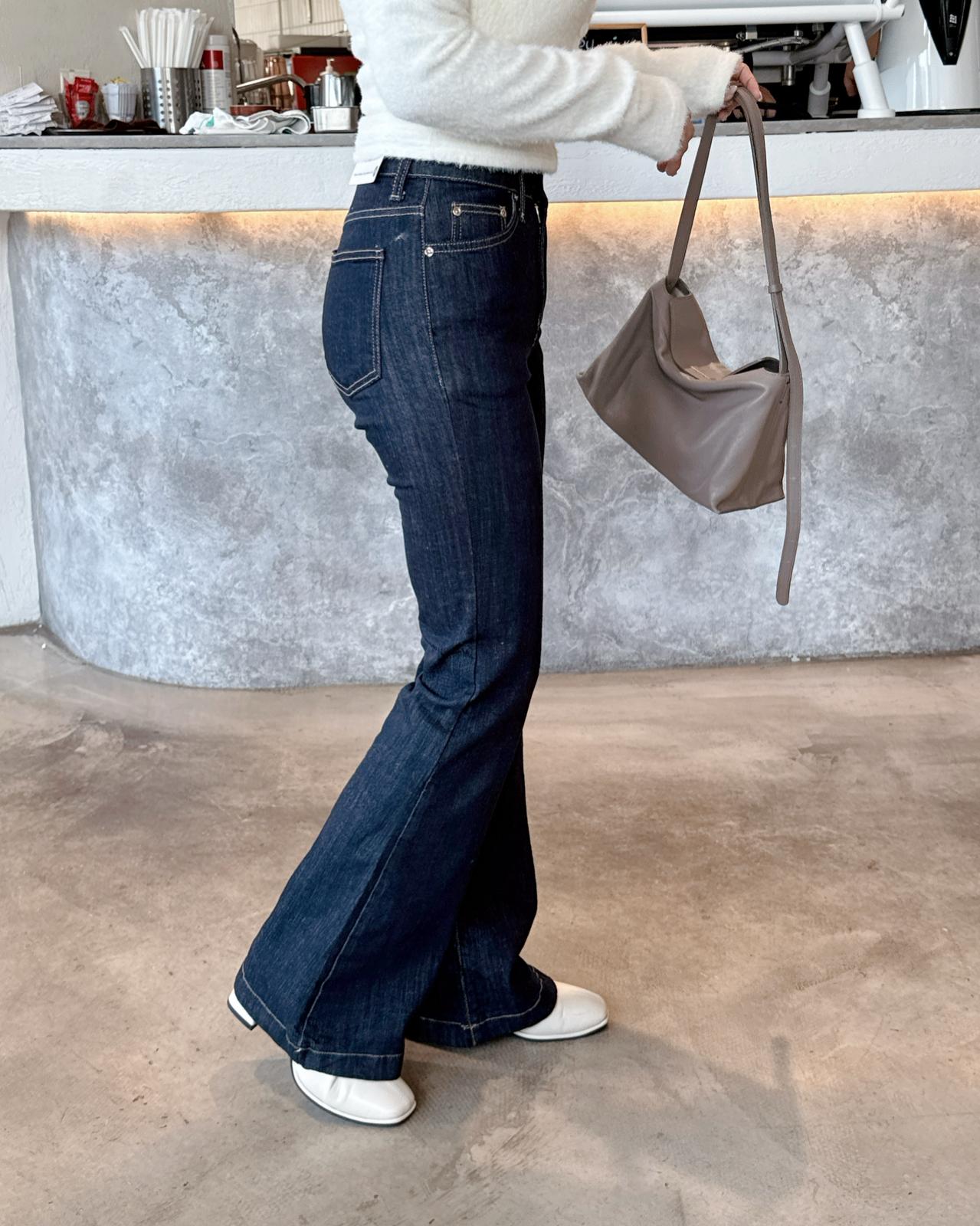 【不褪色面料!】微喇叭彈性面料牛仔褲