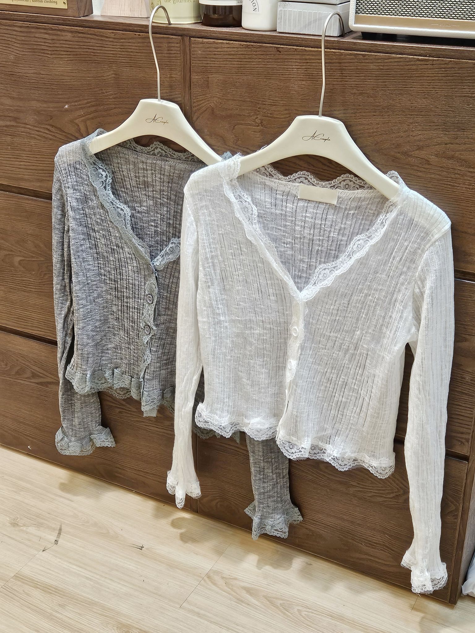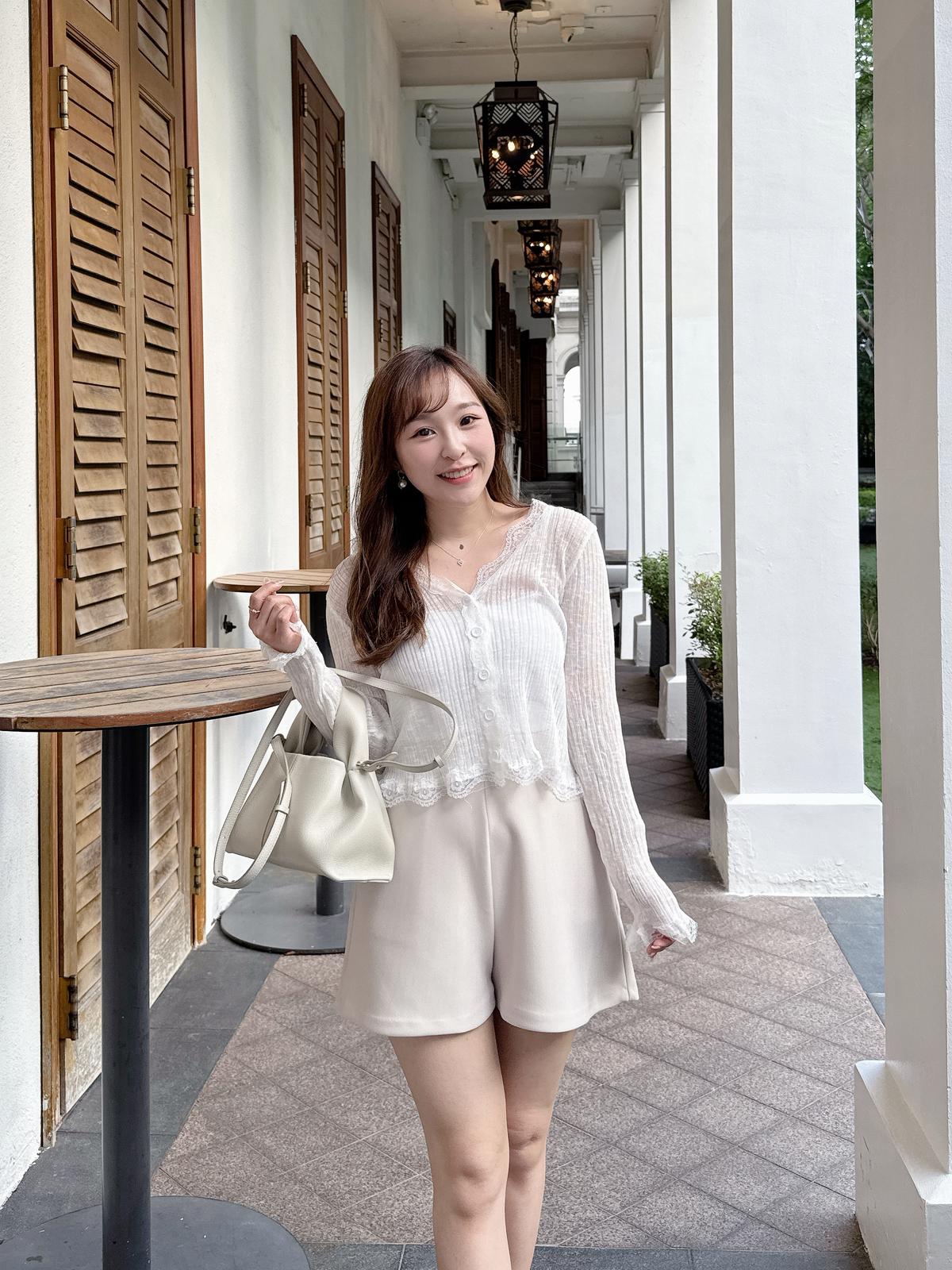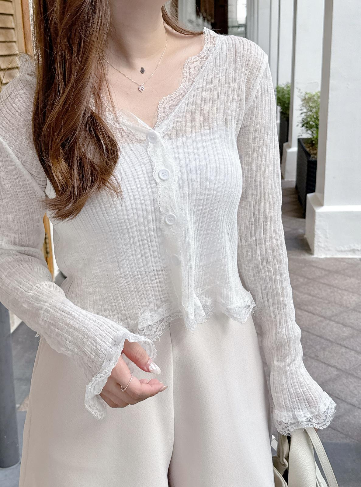 【回饋價發售】蕾絲邊暗直紋上衣/外套