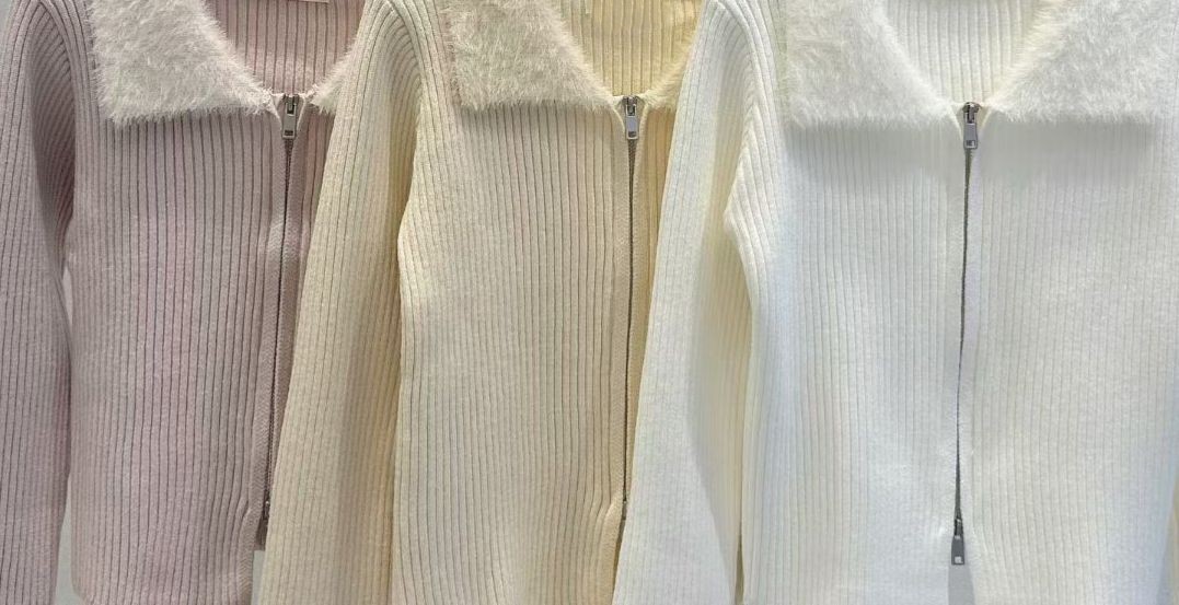 【查詢度最高】毛毛拼接雙拉鍊針織毛衣