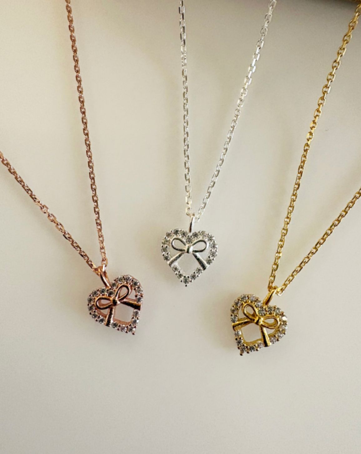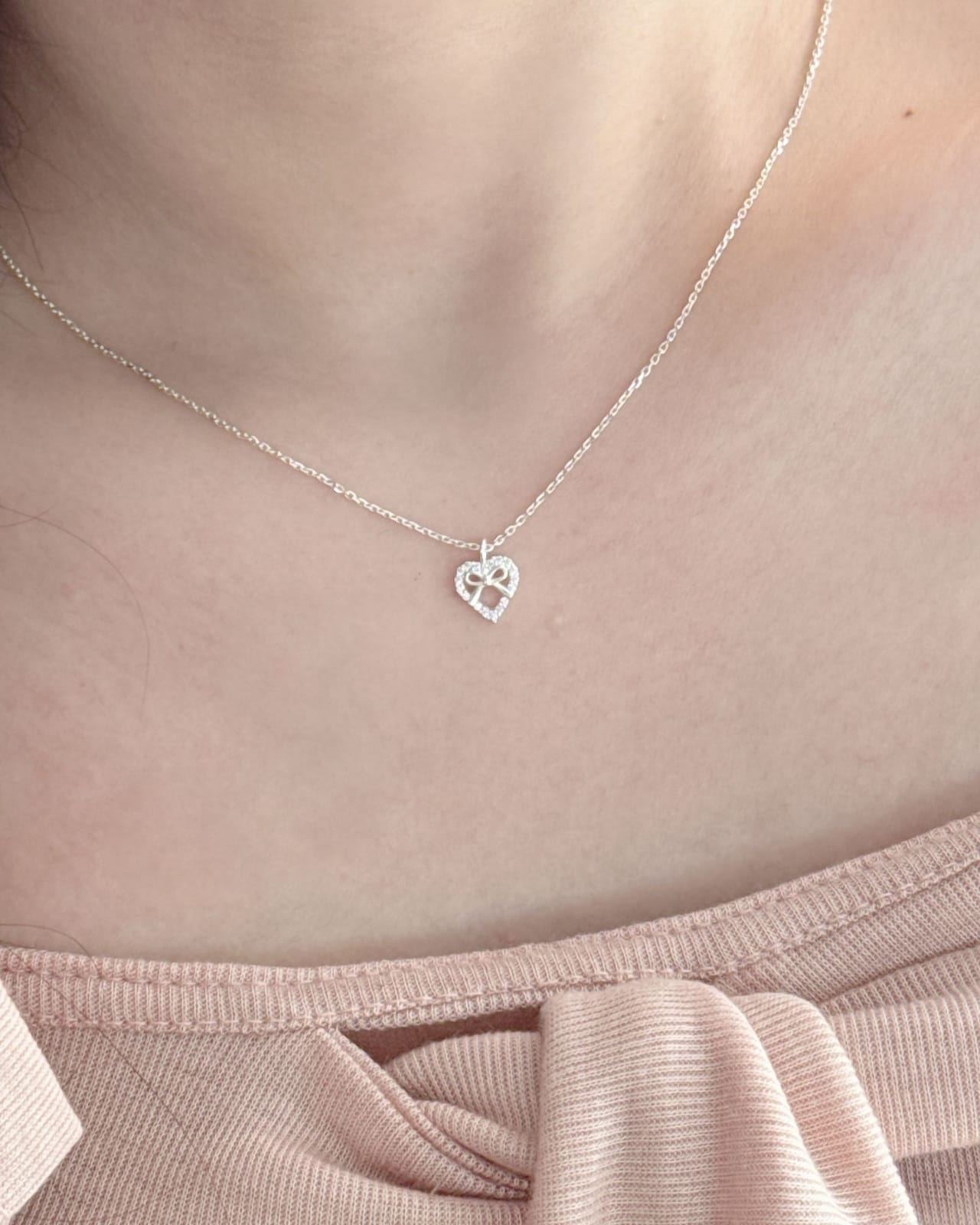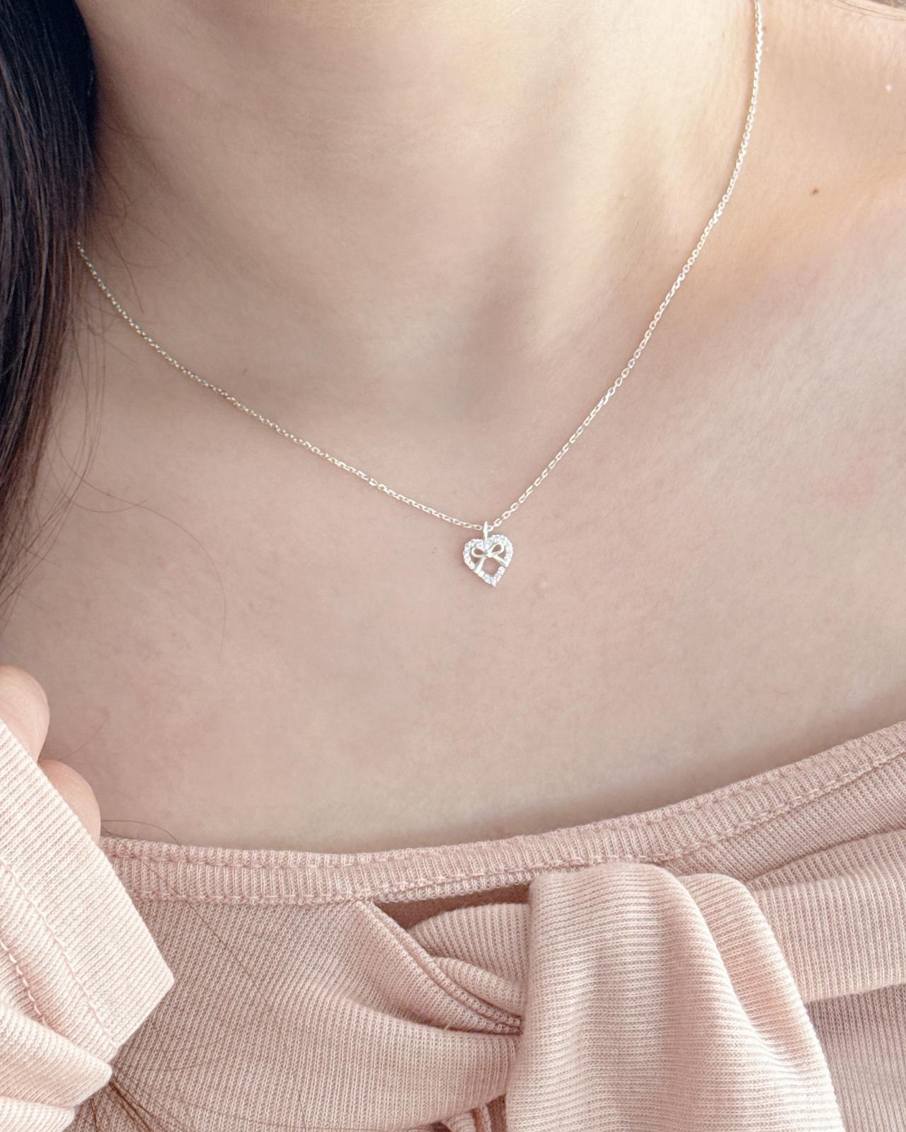 【ACCS.】925純銀蝴蝶結皓石心形頸鏈