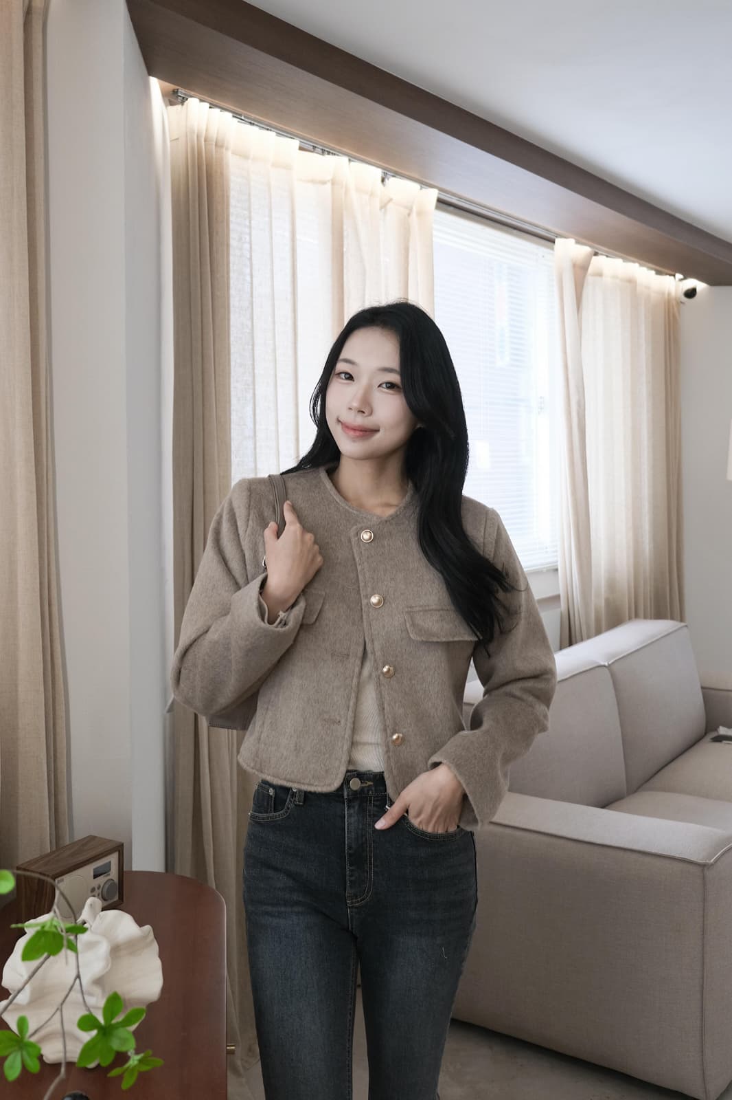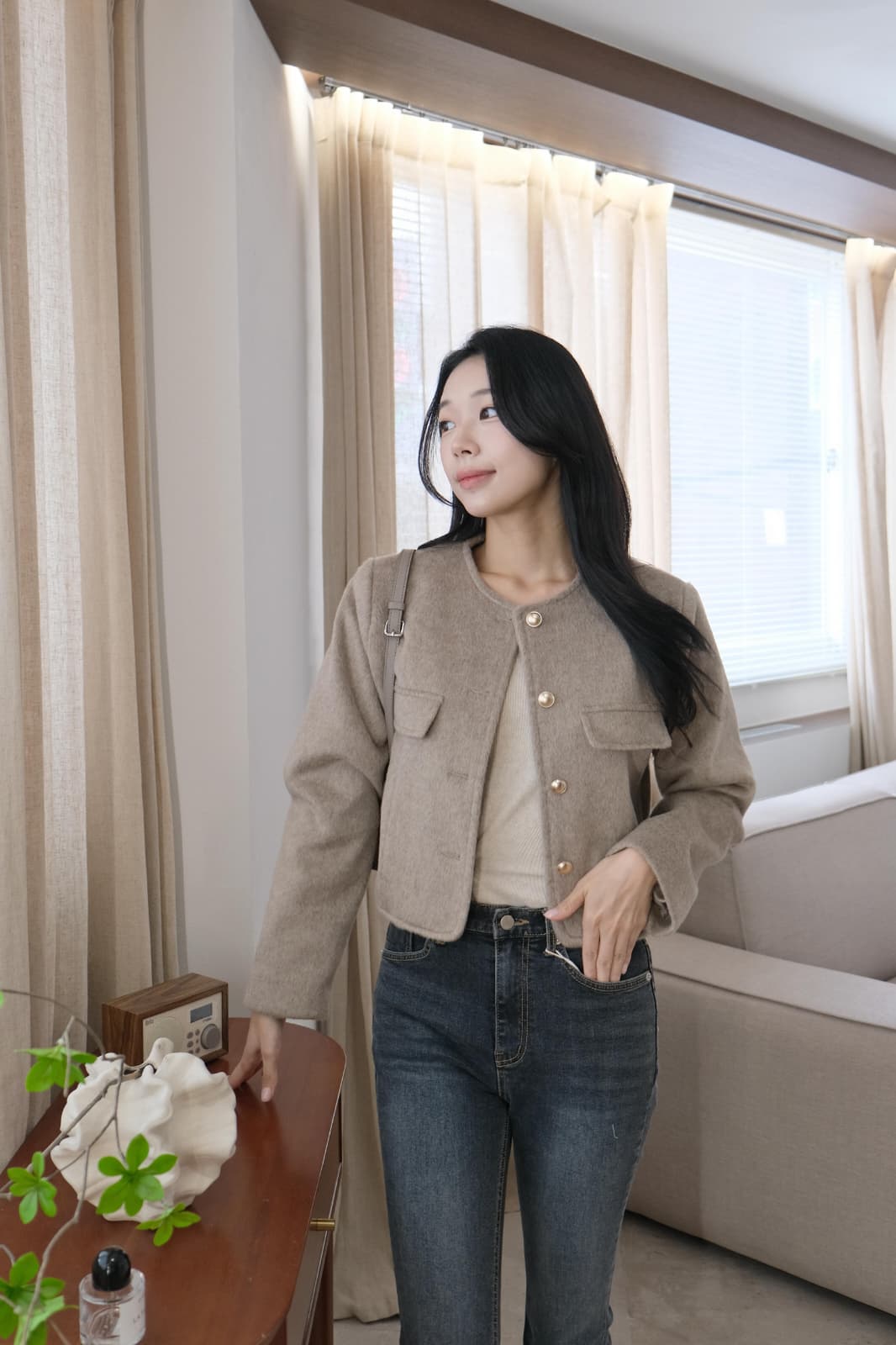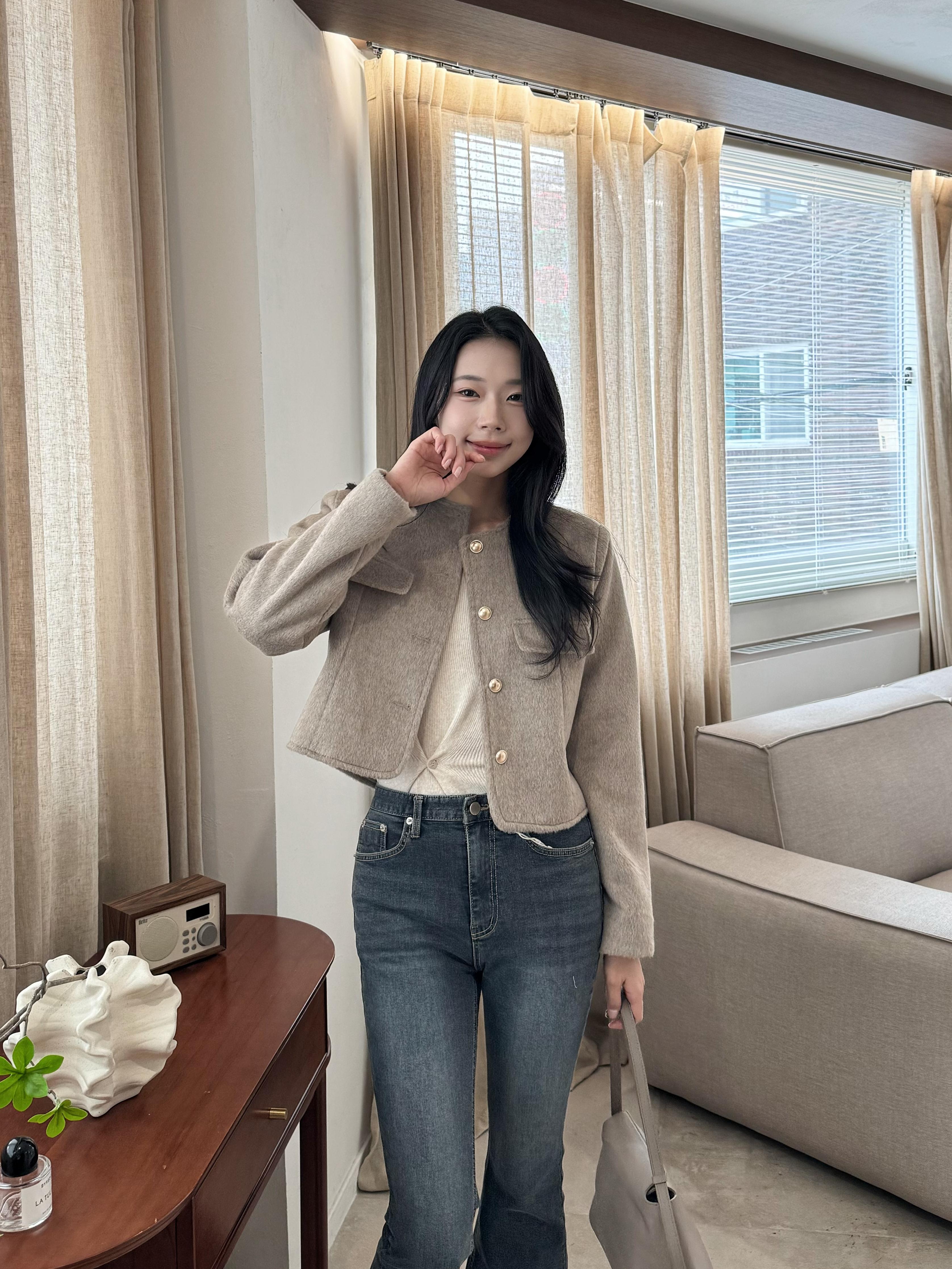 【PREMIUM款式】金鈕扣法式短版外套 啡色