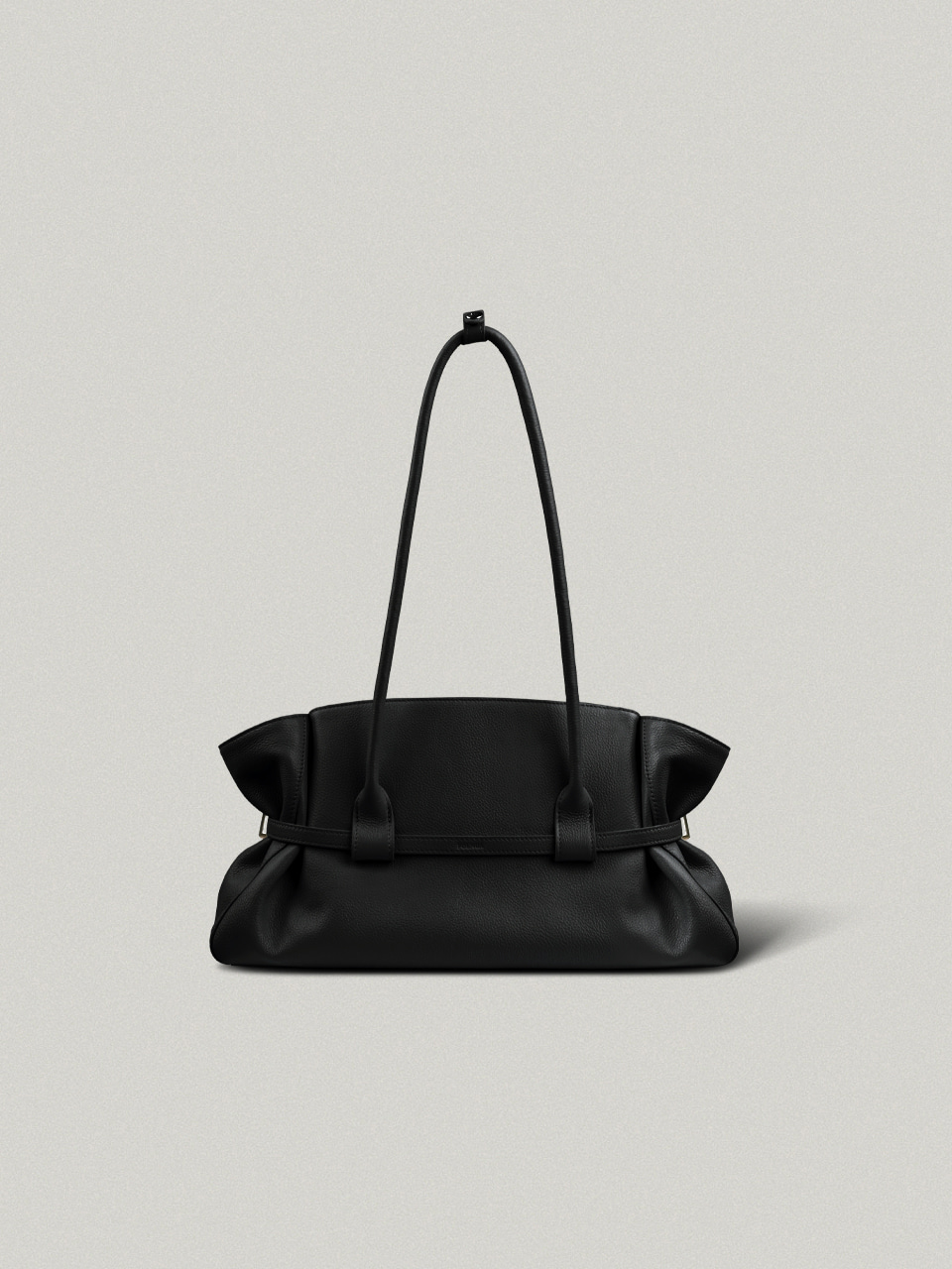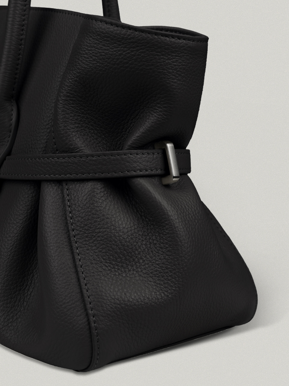 採用天然牛皮特有的深邃質感與柔軟觸感,結合展現皺褶工藝的細緻輪廓,完美詮釋了高貴與優雅的韻味。