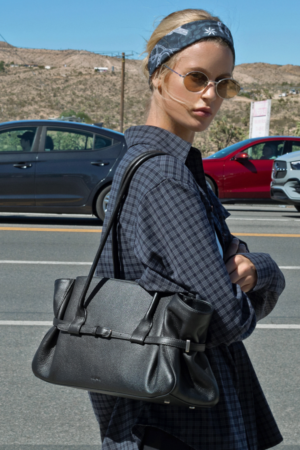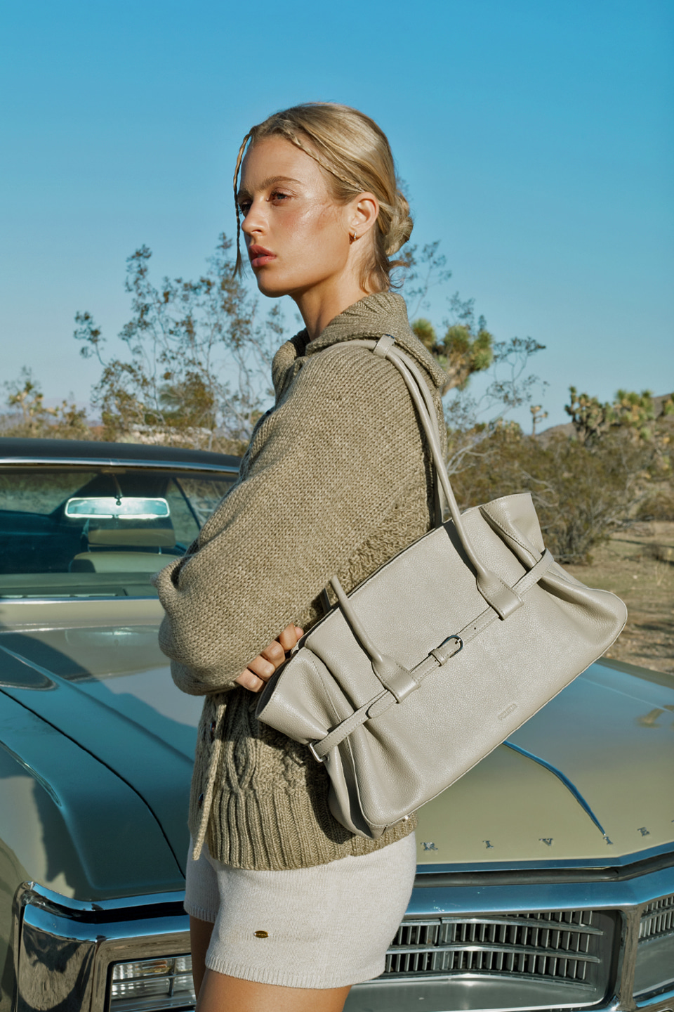 包身側面自然垂墜的立體感,提供了充裕的收納空間;搭配包身前方的五金細節,兼具實用性與設計感。無論是摩登都市風還是簡約日常休閒,都能和諧搭配,讓您隨時隨地展現獨特魅力。