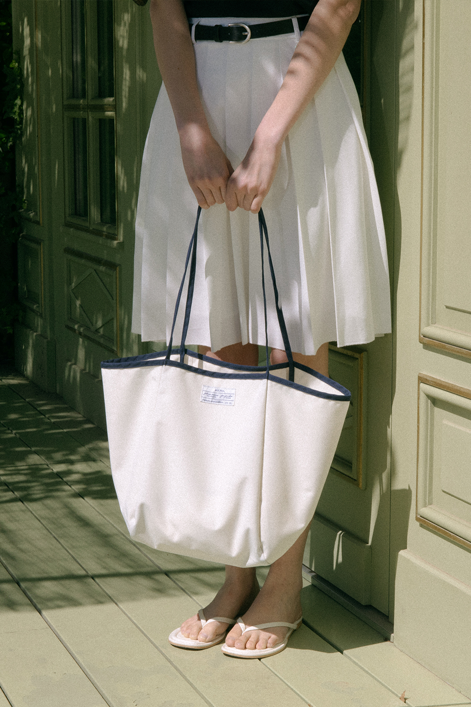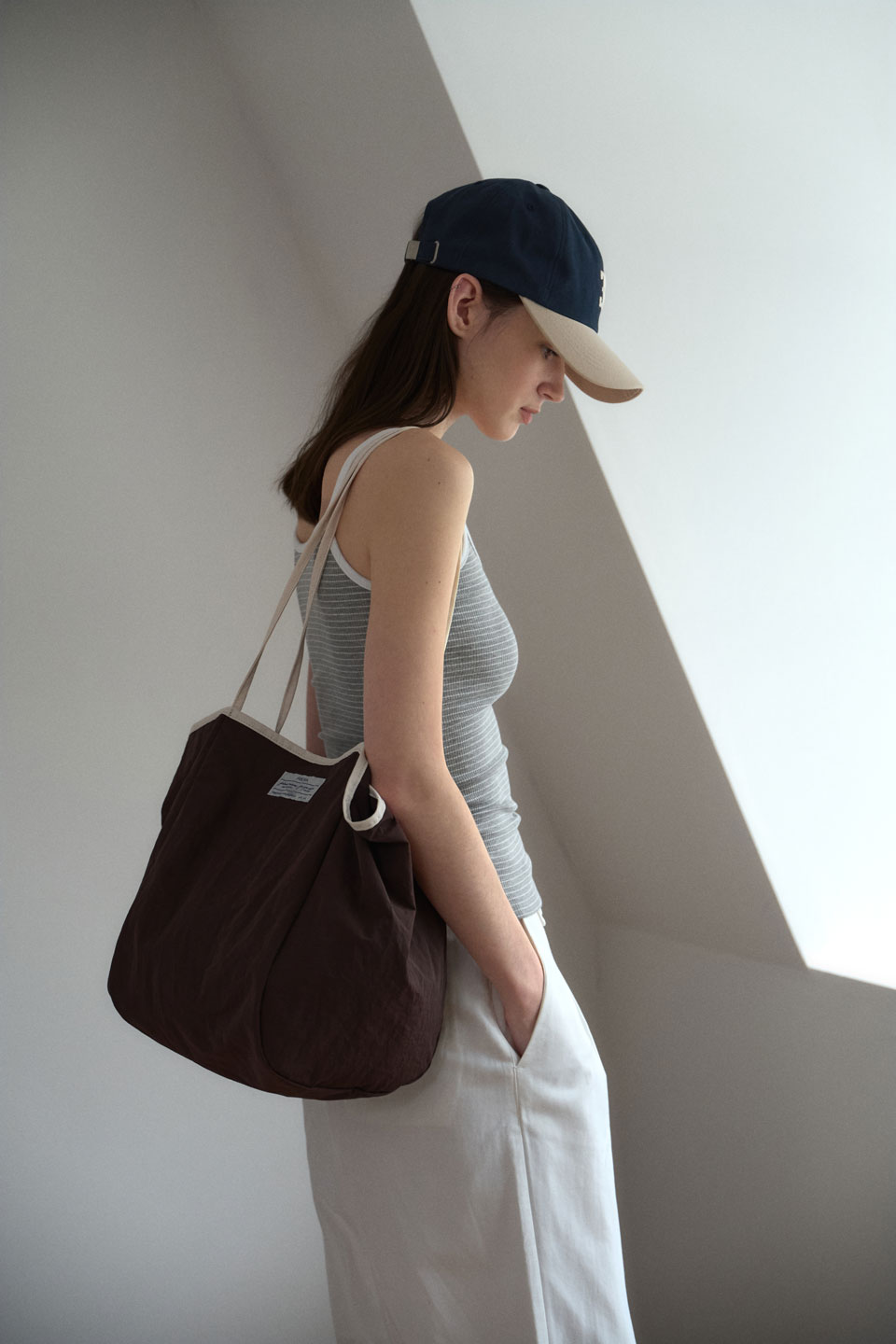 設計上採用深具層次感的海軍藍與象牙白配色,非常適合打造休閒風格。此外,包身縫製有 24 SUMMER 季節限定標籤,不僅增加了細節亮點,更提升了整體的設計感。