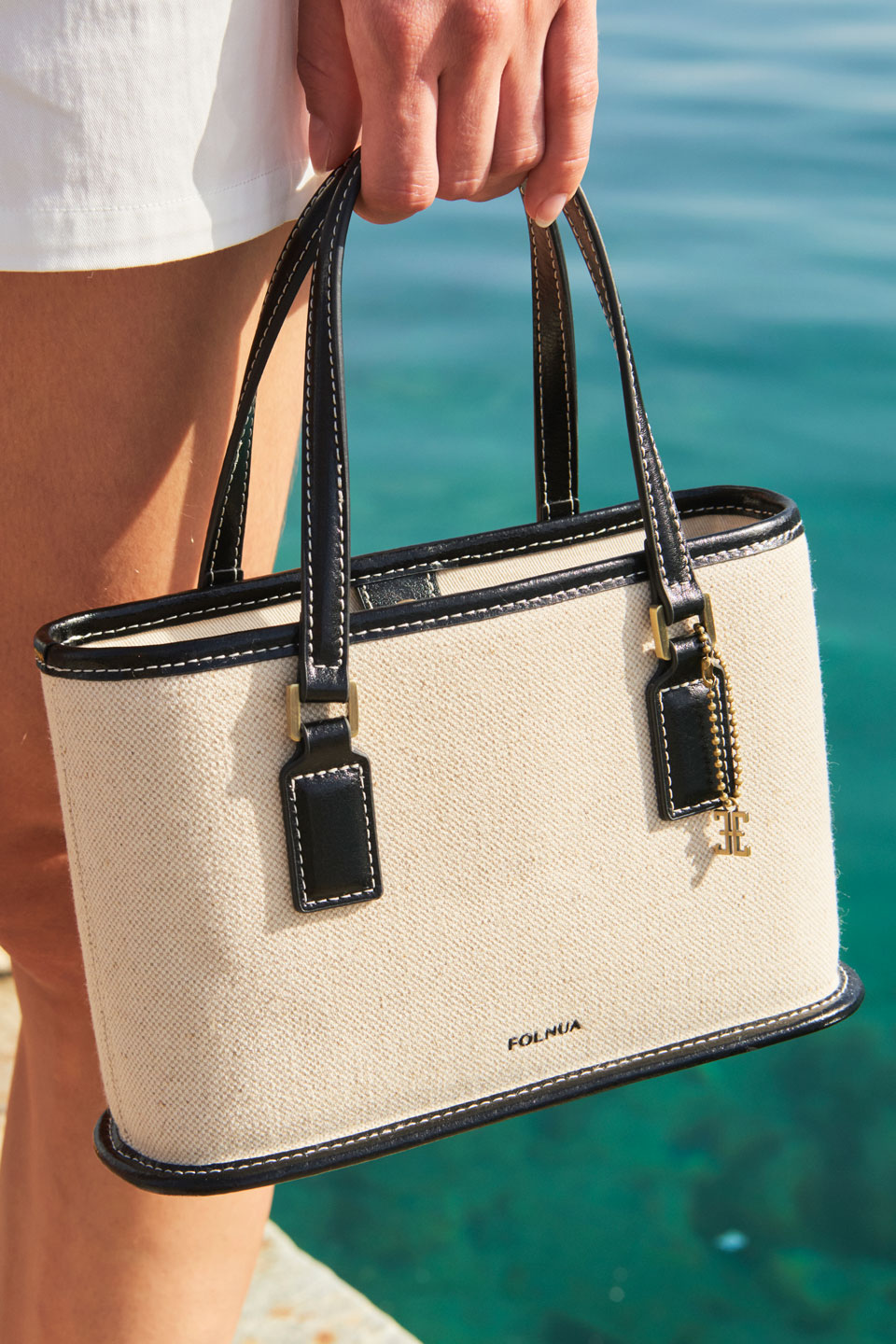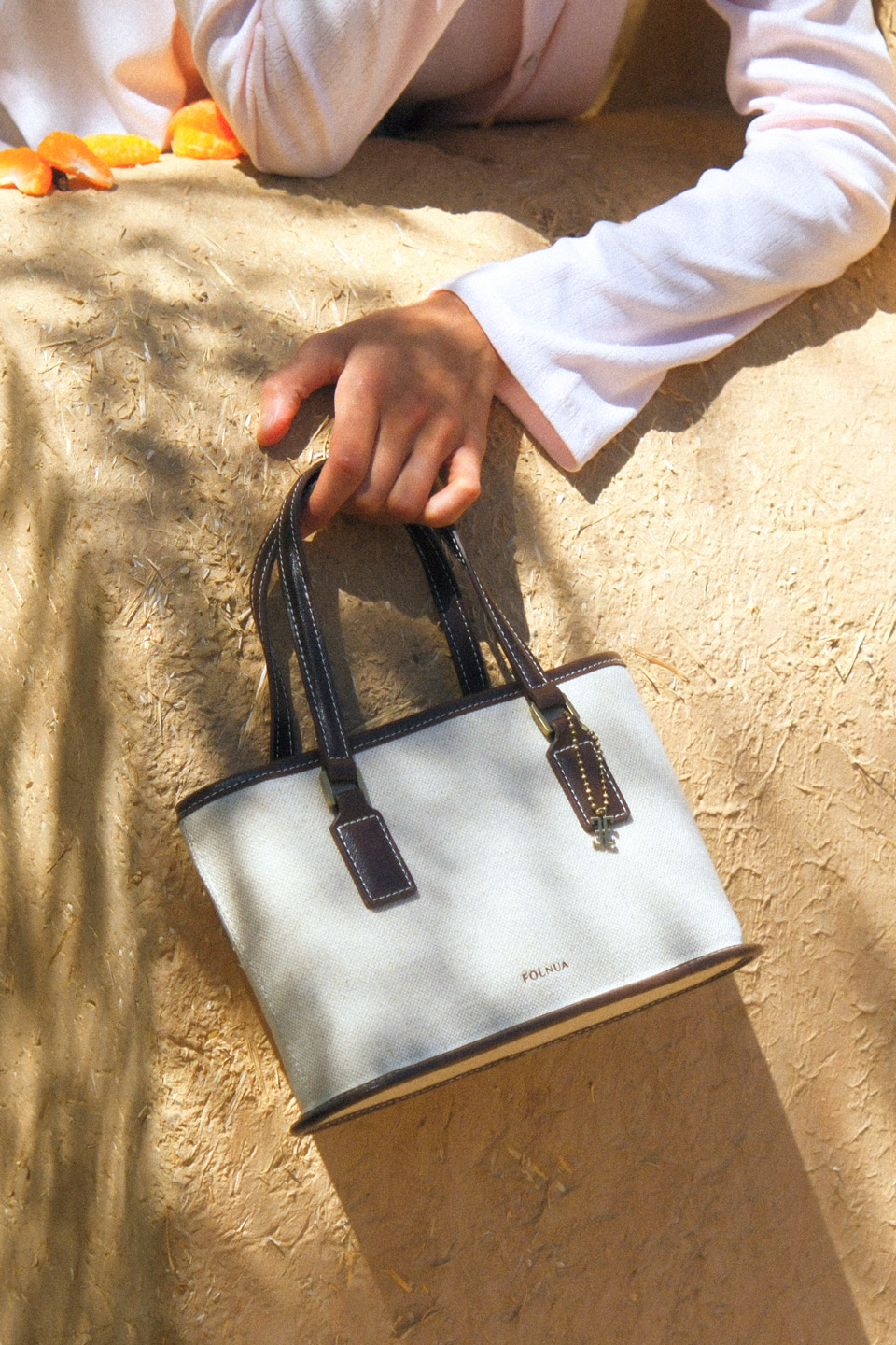 這款包款的靈感源自倫敦的波羅市場(Borough Market),雖然體積輕巧,卻擁有充足的收納空間。皮革上的縫線細節為整體增添了休閒氣息,搭配堅固耐用的工藝細節,更凸顯其精緻質感。包身附有可拆卸的 Folnua 經典標誌軍牌裝飾,可依據穿搭風格自由點綴。