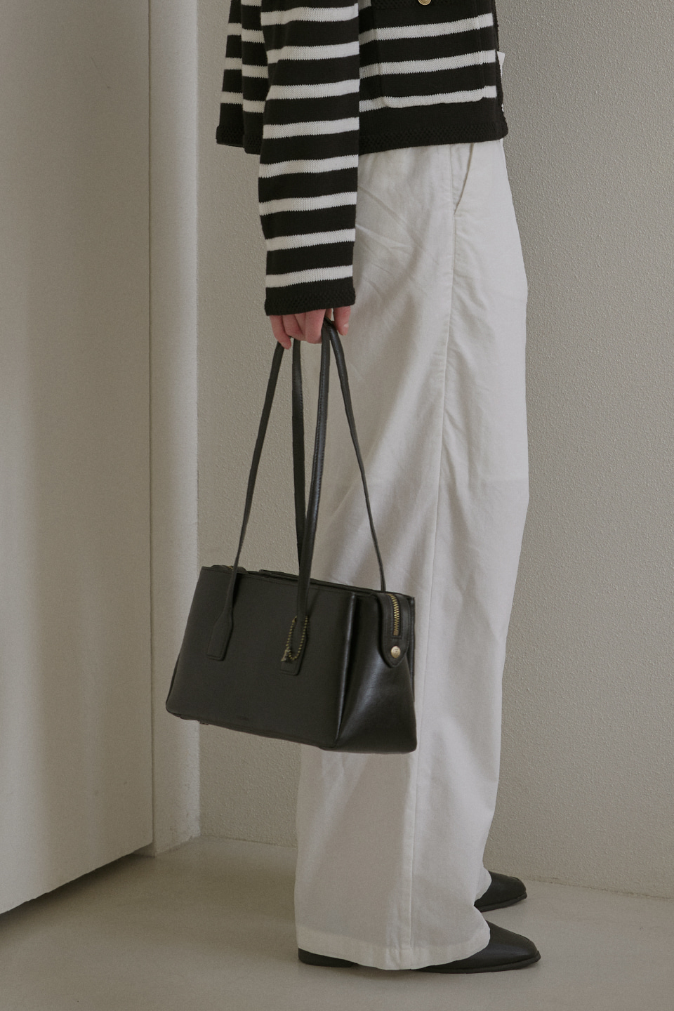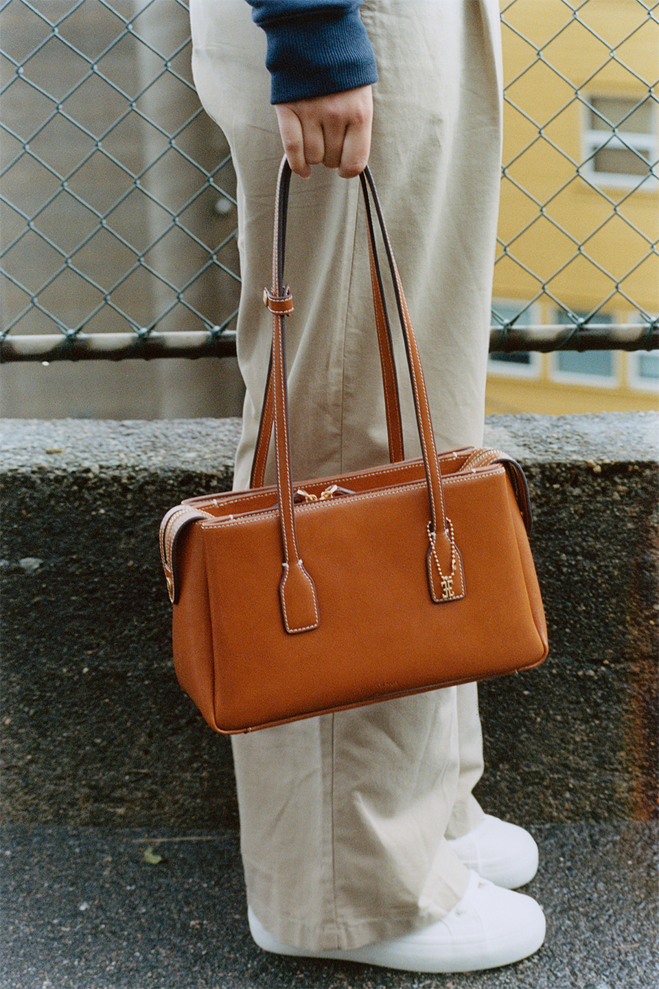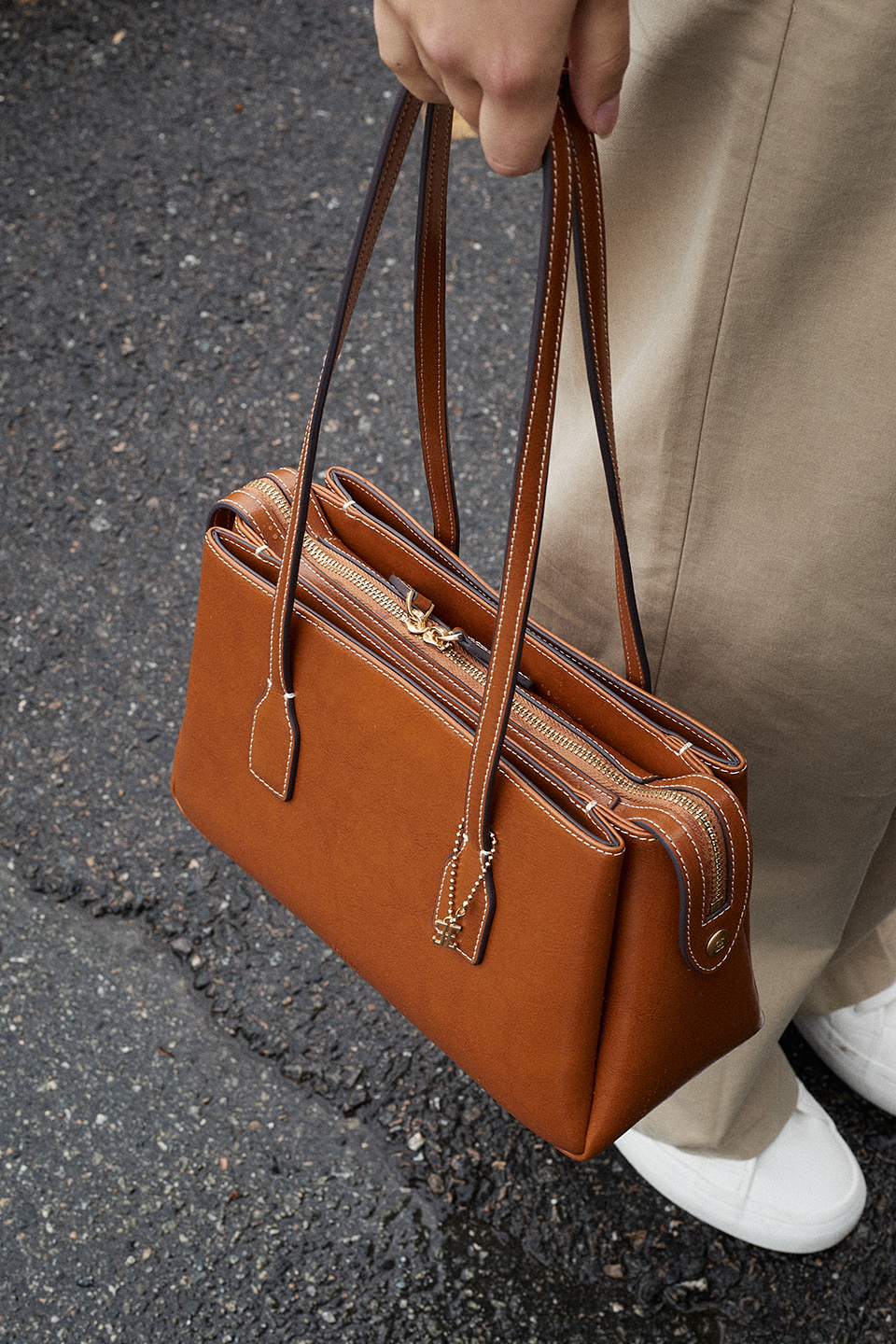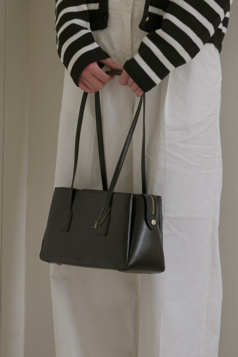 這款包款以倫敦塔橋(Tower Bridge)的形態為靈感設計,整體分為三個獨立收納空間,展現出極具結構感的輪廓與設計細節。拉鍊末端採用刻有 Folnua 經典標誌的壓扣固定,不僅提升了產品的完成度,更彰顯出高貴的質感。