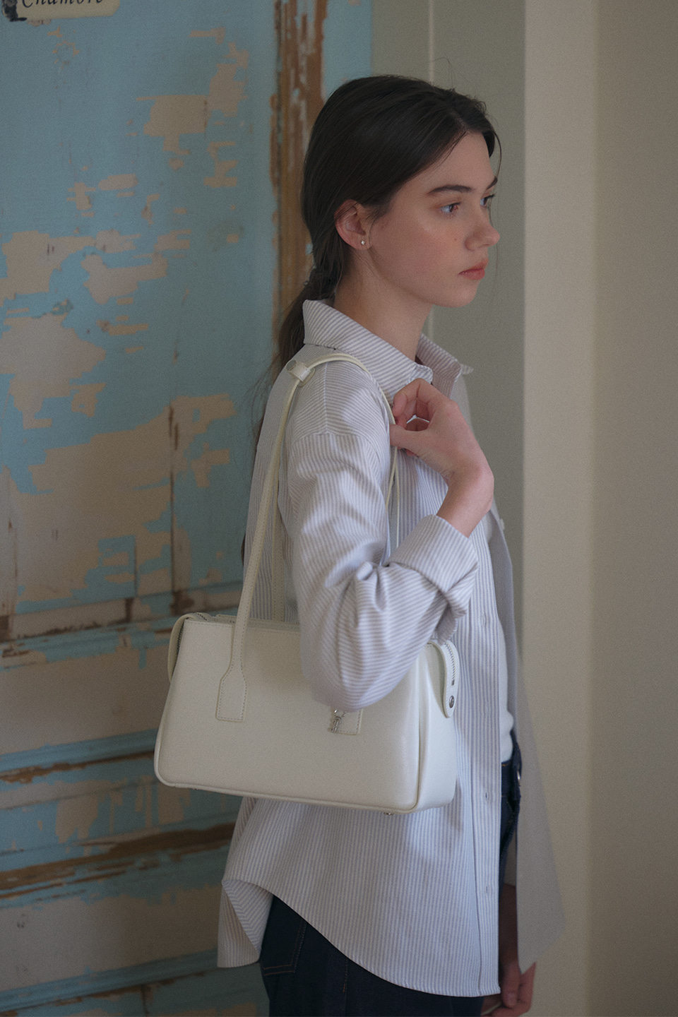 這是一款採用帶有細膩裂紋質感的皮革製成的單肩包——Mini Bridge Bag,展現出優雅的復古韻味。