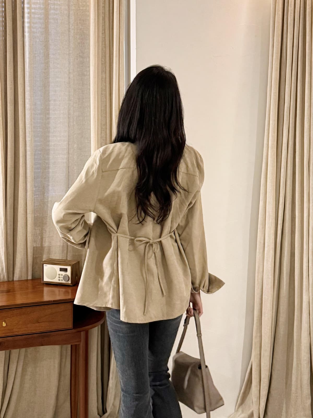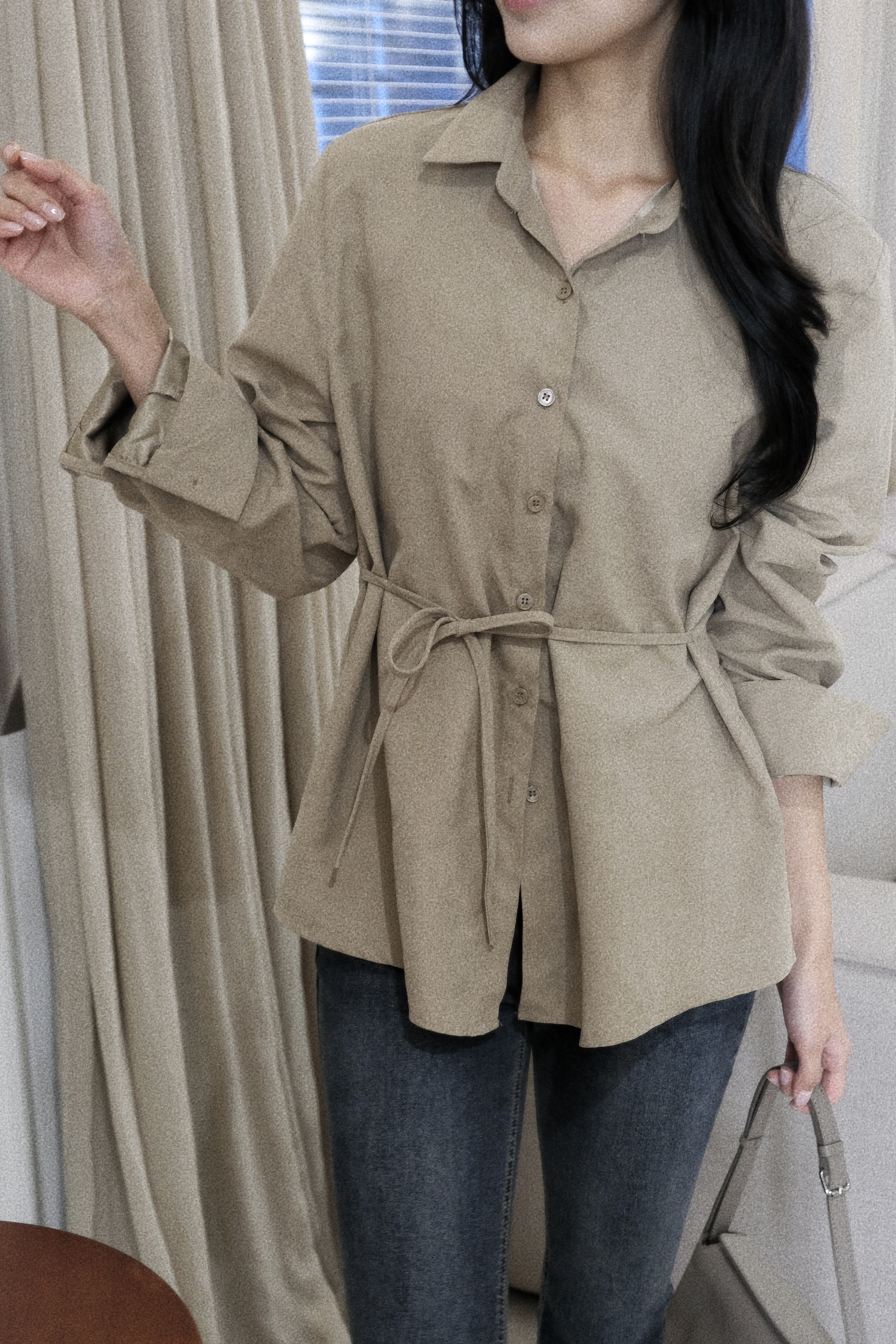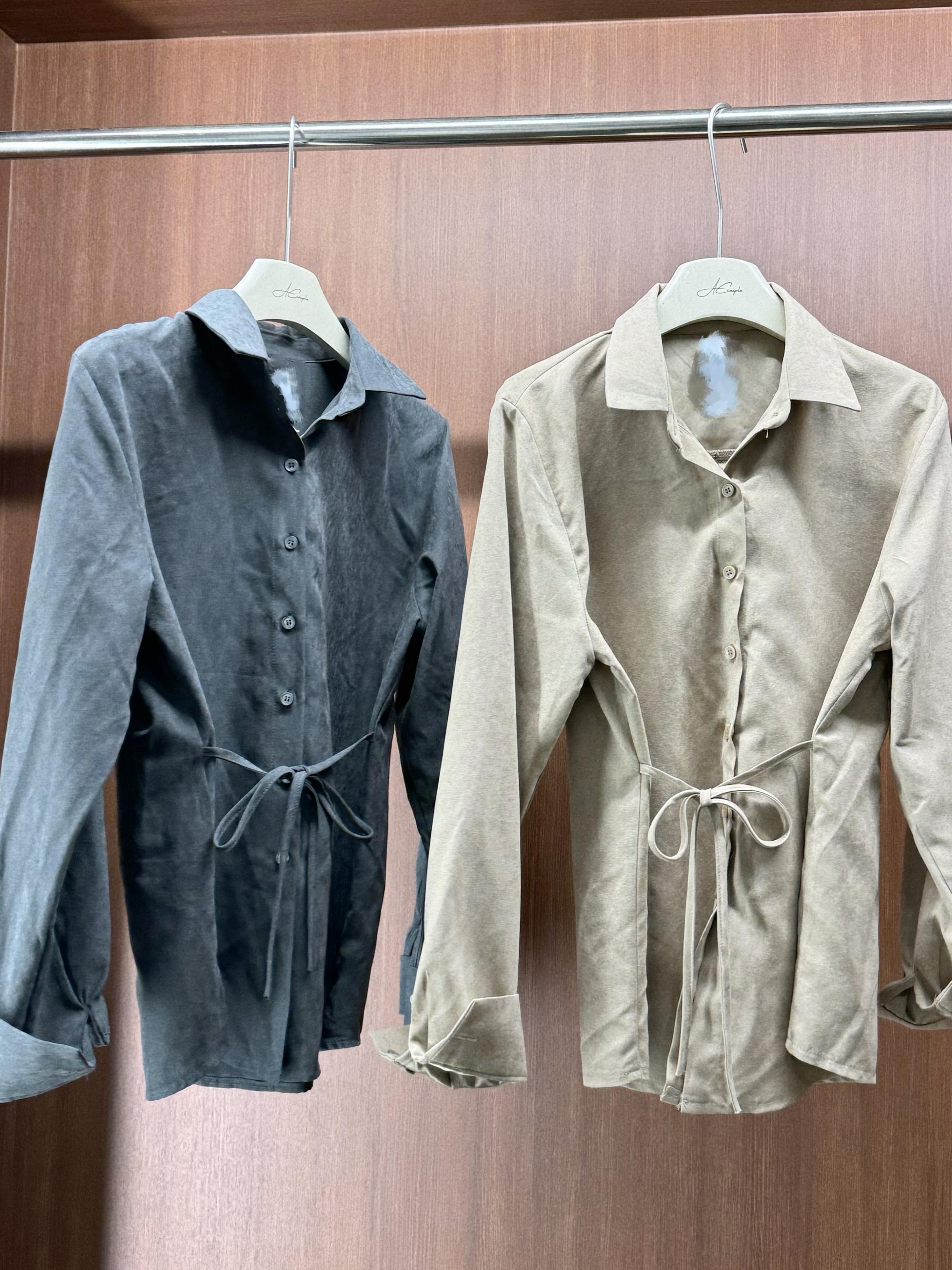 【仿猄皮質感】氣質腰帶鈕扣襯衫