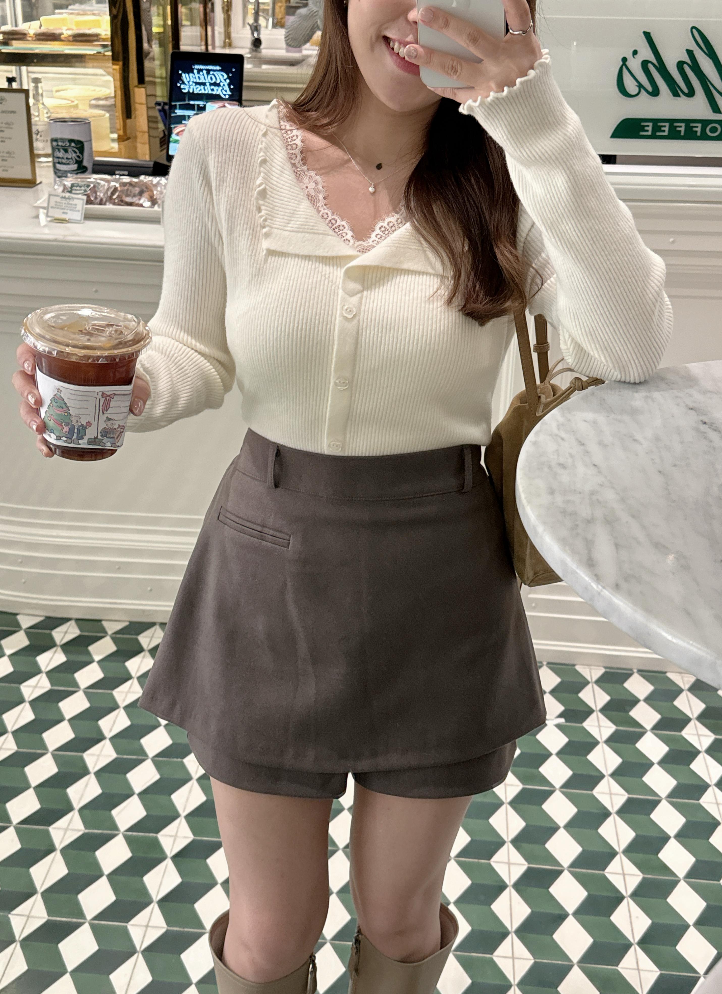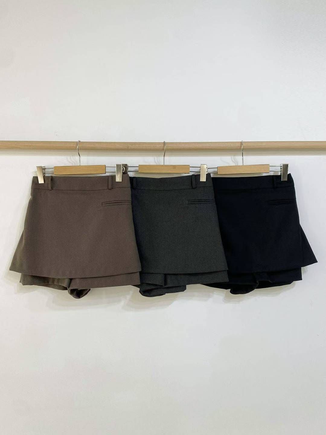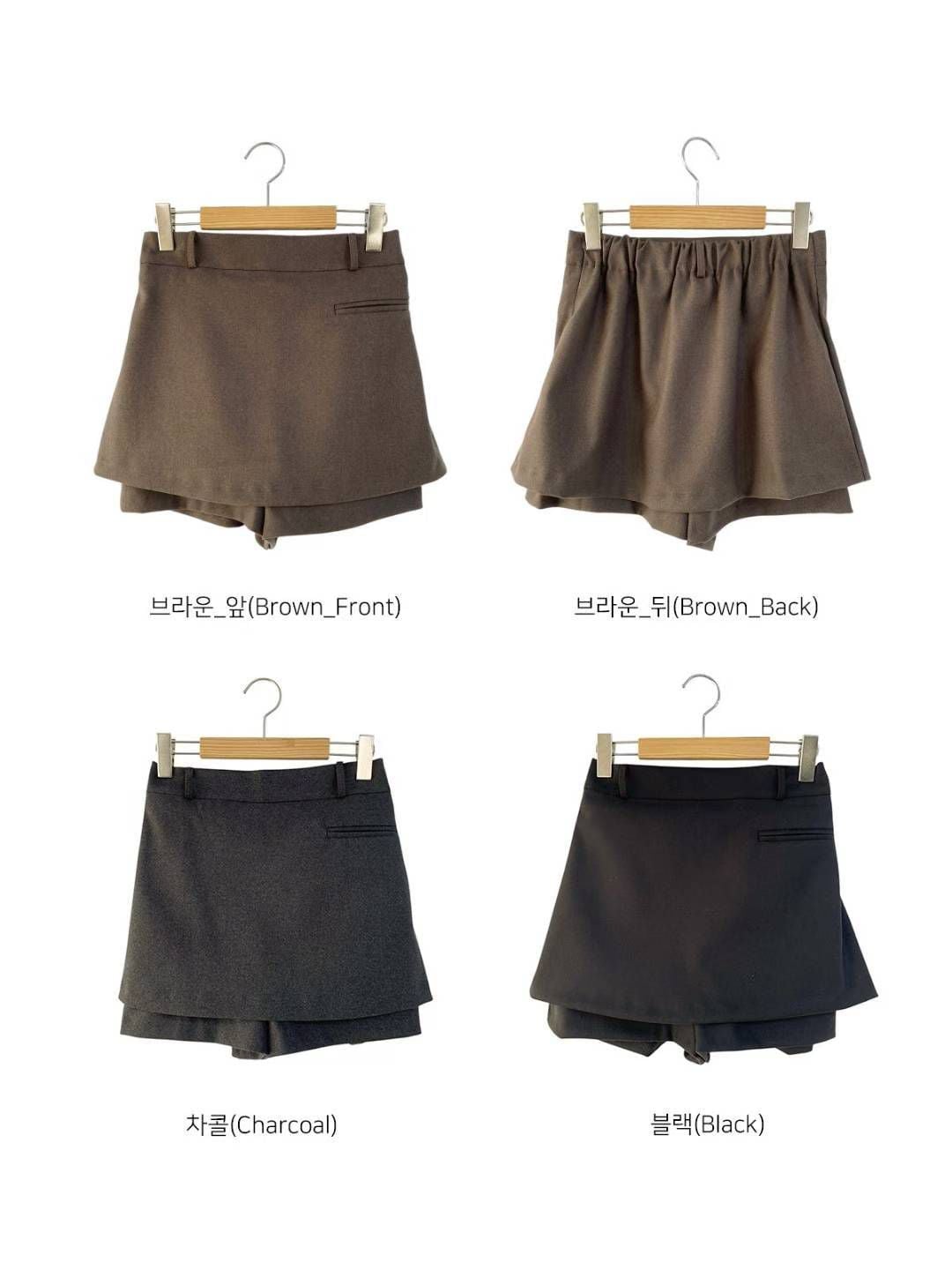 【韓國連線】 雙層假口袋頭橡筋裙褲 啡色