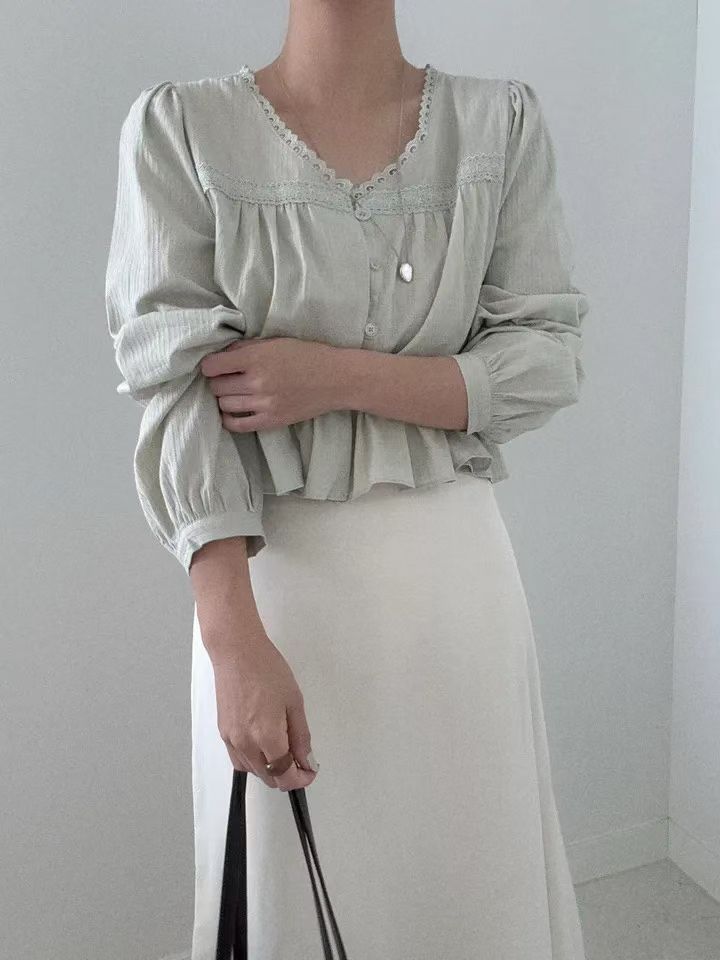【韓感滿滿】氣質喱士邊長袖襯衫