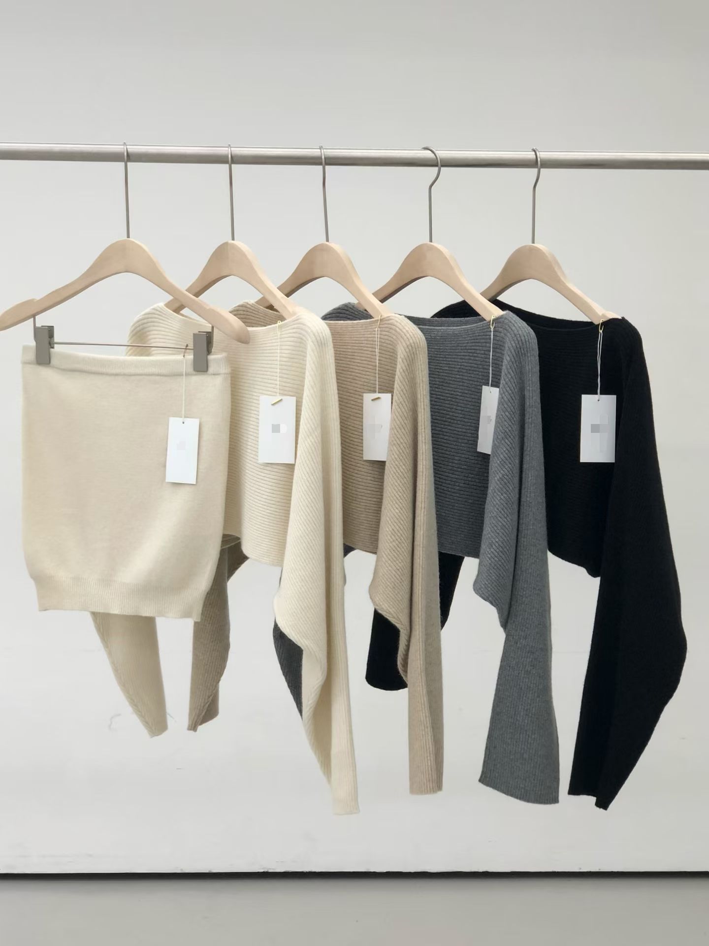 【TWO WAYS】兩穿溫柔感橫紋套裝 米白色
